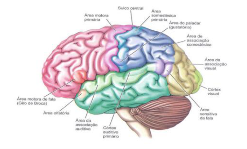 A percepção auditiva, no sistema nervoso central, é efetuada no lobo temporal, ao nível das áreas auditivas, primária e secundária. A parte posterior da área auditiva primária recepciona os sons de alta frequência e a parte anterior os sons de baixa frequência. A área auditiva secundária recebe impulsos da área primária e do tálamo, considerando-se que esta é necessária para a interpretação dos sons e para a associação dos estímulos sonoros com outra informação sensorial (Snell 2006).